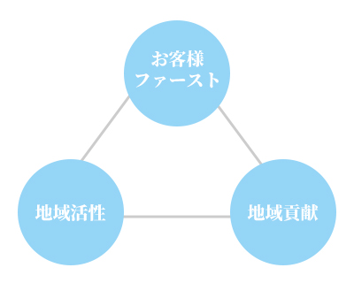 地域の皆さまのお役に立つことを通じて、地域の活性化と社会への貢献を目指すとともに、常に成長と進化を続ける企業を目指してまいります。